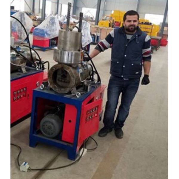 The rebar cold forging upsetting machine use the cold heading principle to make the steel end for plastic deformation, diameter increased 4 ~ 6mm, and then processing thread.